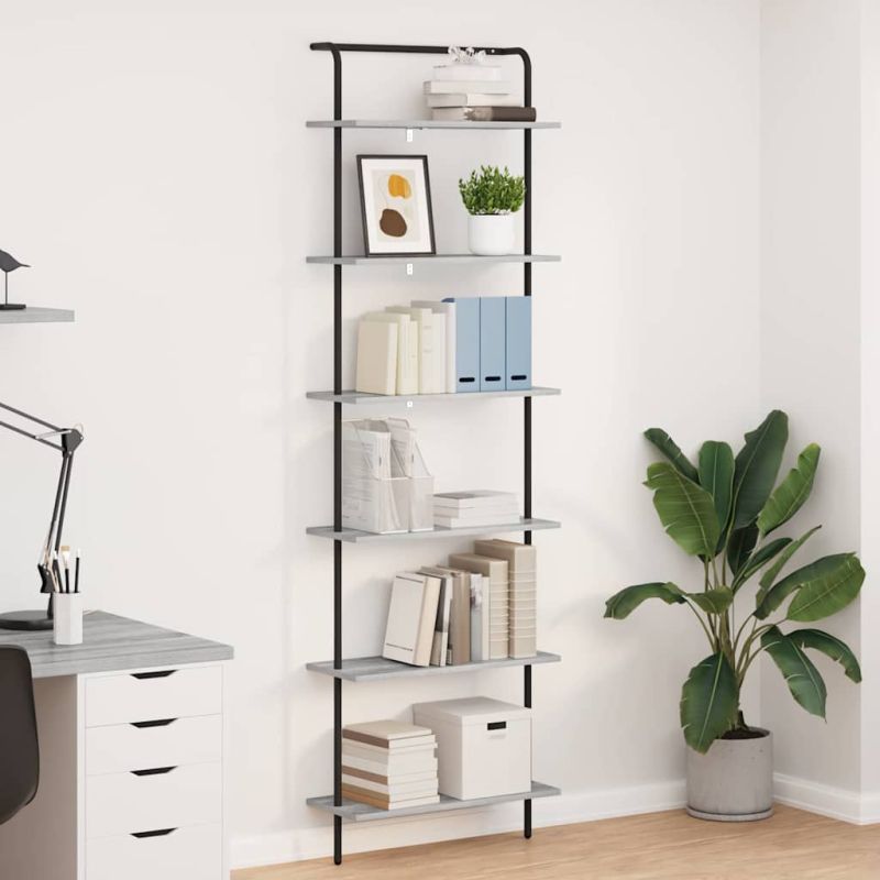 Рафт за книги Сив Сонома 60 x 24 x 203 см Инженерно дърво