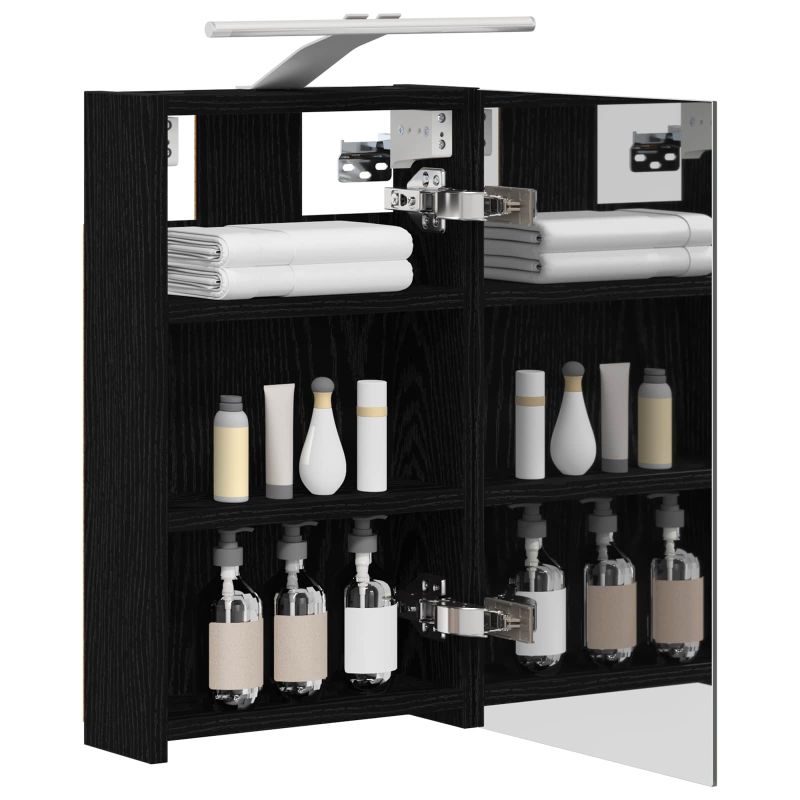 Шкаф с огледало за баня с рафт Черния дъб 30 x 10,5 x 50 см