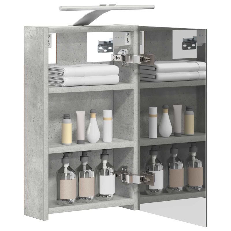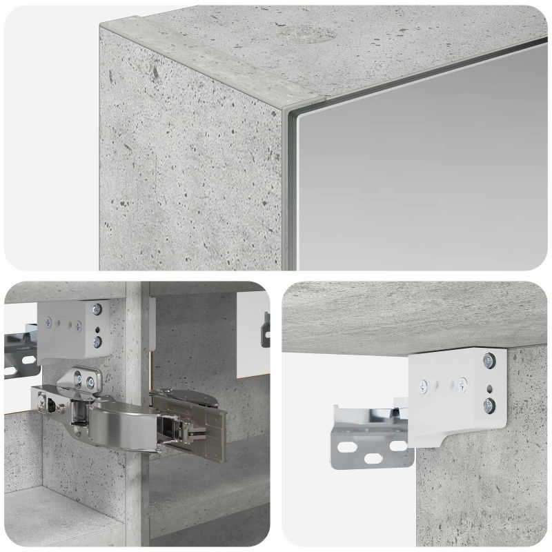 Шкаф с огледало за баня с рафт Циментено сиво 30 x 10,5 x 50 см
