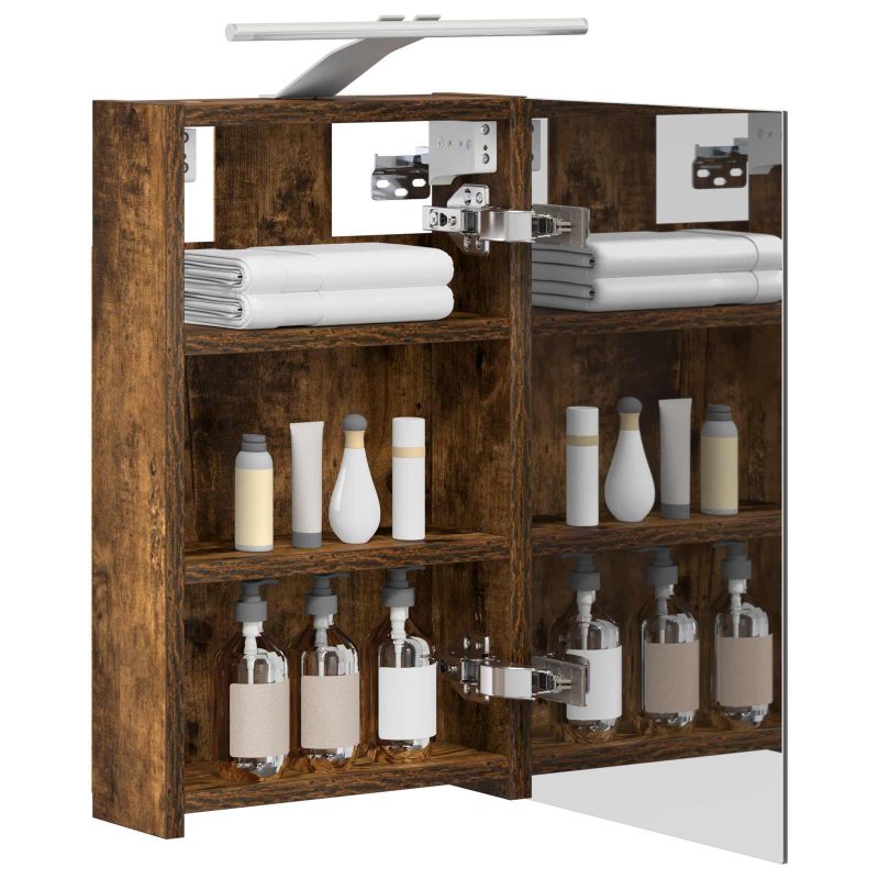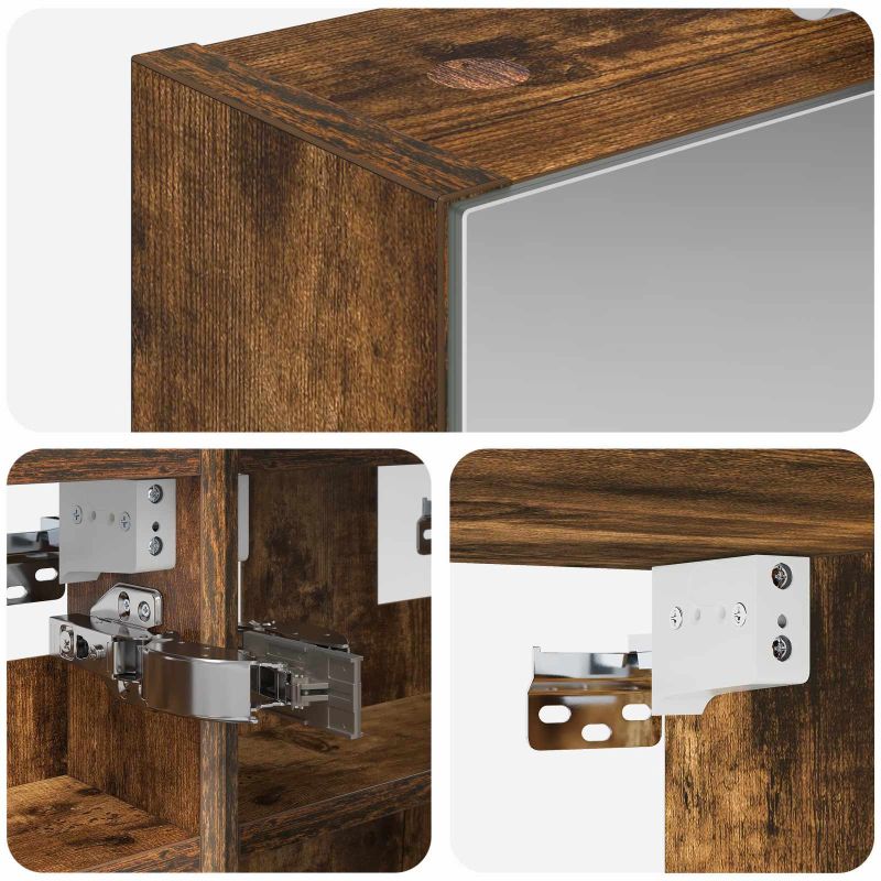 Този модерен огледален шкаф е супер практичен и стилен. Сладостта на дизайна му съчетава елегантни линии и минималистичен вид, който подхожда на всяка баня. Осигурява достатъчно място за основните неща, а двупосочното огледало удобно комбинира отражения с ясна видимост. Изработка от инженерна дървесина: Здравият шкаф е направен от качествени материали, които му осигуряват дълготрайност. Гладкото покритие придава модерен прочит и не позволява задържане на замърсявания. Двупосочно огледало: С две страни, които работят за различни нужди - от ежедневна грижа до забавление, докато се подготвяте. Дизайн с монтаж на стена: Шкафът се монтира на стената, за да спести място в движението, а същевременно е модерен и елегантен. Рафтчета от плоскости: Осигуряват организирано съхранение за козметика и принадлежности, без да заемат много място. Достъп с панти: Вратите с панти се отворят лесно и тихо, без да нарушават спокойствието на вашата баня. Моля, обърнете внимание, че трябва да използвате само сертифициран вход DC 5V. По-високото напрежение може да доведе до прегряване и да повреди устройството, както и до потенциален риск от прегряване и пожар. Не свързвайте този продукт към захранване, различно от описаното в ръководството, на табелката с името или изрично препоръчано от vidaXL. Този уред не трябва да се използва от деца под 15 години, както и от лица с намалени физически, сетивни или умствени способности или с липса на опит и познания относно използването на електронни уреди. Електричеството е опасно. Повредите и неправилният монтаж, употреба или промяна (подмяна на отделни компоненти) могат да доведат до повреда на уреда , което да доведе до токов удар и опасност за потребителя. Не използвайте този продукт във взривоопасна атмосфера, като например при наличие на запалими течности, газове и прах, или при температура над 50 градуса по Целзий или повече. Не включвайте продукта, ако свързващият кабел или захранването са видимо повредени. Ако външният гъвкав кабел или захранващ кабел на това осветително тяло е повреден, той трябва да бъде заменен изключително от производителя или негов сервизен агент, или от подобно квалифицирано лице, за да се избегне опасност. Изключете захранването по време на монтажа и поддръжката. Уверете се, че крушките са изстинали. Светлинният източник на това осветително тяло не може да се заменя; когато светлинният източник достигне края на експлоатационния си срок, цялото осветително тяло трябва да се замени. Само за употреба на закрито, не използвайте този продукт на открито.