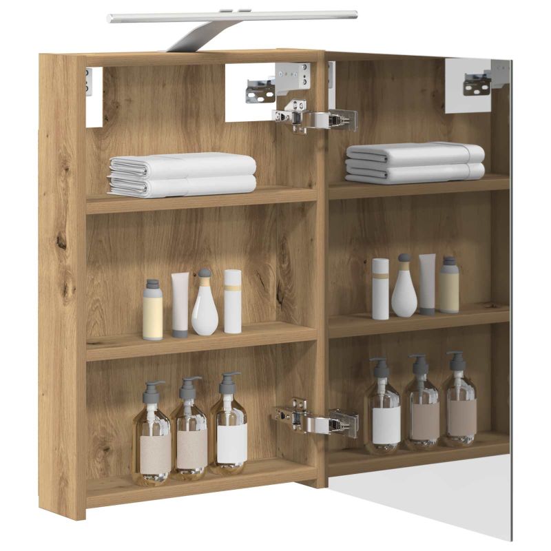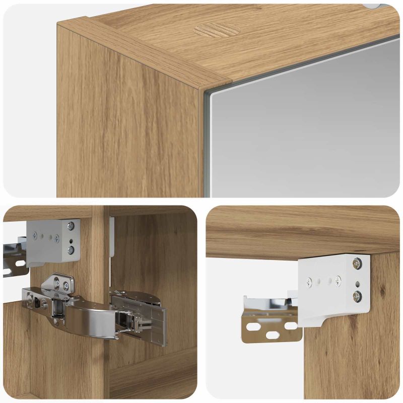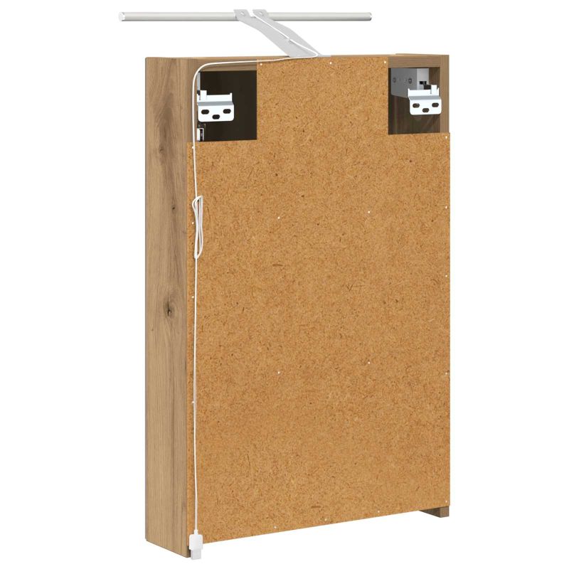 Този модерен огледален шкаф е супер практичен и стилен. Сладостта на дизайна му съчетава елегантни линии и минималистичен вид, който подхожда на всяка баня. Осигурява достатъчно място за основните неща, а двупосочното огледало удобно комбинира отражения с ясна видимост. Изработка от инженерна дървесина: Здравият шкаф е направен от качествени материали, които му осигуряват дълготрайност. Гладкото покритие придава модерен прочит и не позволява задържане на замърсявания. Двупосочно огледало: С две страни, които работят за различни нужди - от ежедневна грижа до забавление, докато се подготвяте. Дизайн с монтаж на стена: Шкафът се монтира на стената, за да спести място в движението, а същевременно е модерен и елегантен. Рафтчета от плоскости: Осигуряват организирано съхранение за козметика и принадлежности, без да заемат много място. Достъп с панти: Вратите с панти се отворят лесно и тихо, без да нарушават спокойствието на вашата баня. Моля, обърнете внимание, че трябва да използвате само сертифициран вход DC 5V. По-високото напрежение може да доведе до прегряване и да повреди устройството, както и до потенциален риск от прегряване и пожар. Не свързвайте този продукт към захранване, различно от описаното в ръководството, на табелката с името или изрично препоръчано от vidaXL. Този уред не трябва да се използва от деца под 15 години, както и от лица с намалени физически, сетивни или умствени способности или с липса на опит и познания относно използването на електронни уреди. Електричеството е опасно. Повредите и неправилният монтаж, употреба или промяна (подмяна на отделни компоненти) могат да доведат до повреда на уреда , което да доведе до токов удар и опасност за потребителя. Не използвайте този продукт във взривоопасна атмосфера, като например при наличие на запалими течности, газове и прах, или при температура над 50 градуса по Целзий или повече. Не включвайте продукта, ако свързващият кабел или захранването са видимо повредени. Ако външният гъвкав кабел или захранващ кабел на това осветително тяло е повреден, той трябва да бъде заменен изключително от производителя или негов сервизен агент, или от подобно квалифицирано лице, за да се избегне опасност. Изключете захранването по време на монтажа и поддръжката. Уверете се, че крушките са изстинали. Светлинният източник на това осветително тяло не може да се заменя; когато светлинният източник достигне края на експлоатационния си срок, цялото осветително тяло трябва да се замени. Само за употреба на закрито, не използвайте този продукт на открито.