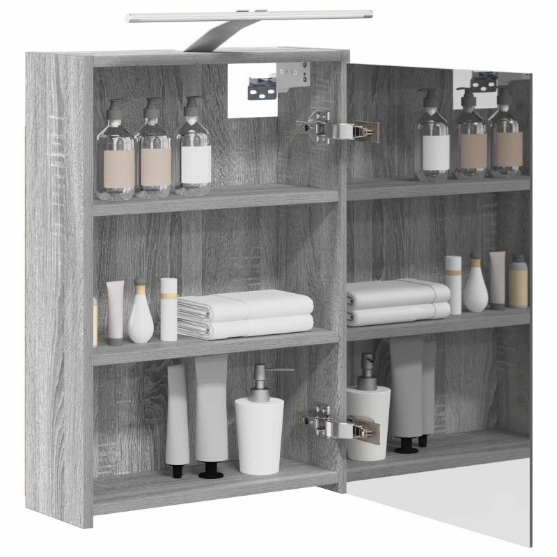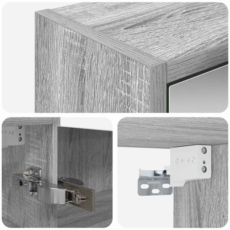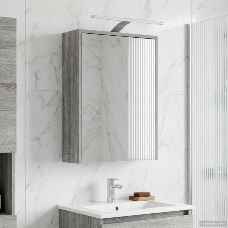 Шкаф с огледало за баня с рафт Сив Сонома 43 x 16 x 62.5 см