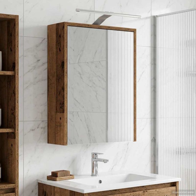 Този модерен огледален шкаф за баня съчетава стил и функционалност с простия си правоъгълен дизайн, който е перфектен за съвременните бани. Комбинира простота с полезност, идеално за всяка баня и предлага практични решения за съхранение. С двустранното огледало и регулируемите си функции, той лесно се интегрира в домашната обстановка. Конструкция от инженерна дървесина : Изработен от здрав инженерна дървесина, този шкаф е стабилен и издръжлив - перфектен за съвременните бани. Дървесината устои на промени и запазва своя вид с течение на времето. Двупосочно огледало : Този шкаф има иновативно двустранно огледало, което комбинира отражение и прозрачност. Полезно за тези, които искат малко уединение, особено в споделени пространства. Лесно откриване с врати на панти : Вратите отварят лесно, осигурявайки бърз достъп до всичко вътре. Няма усилия, за да достигнете нужните неща, което прави ежедневието по-лесно. Регулируеми рафтове : С регулируеми рафтове, вие можете сами да подредите вътрешността според нуждите си. Перфектно за разполагане на всякакви тоалетни принадлежности. Удобство при стенен монтаж : Стенният дизайн спестява място и добавя изчистен вид. Особено полезно за по-малки бани, където е важно да се оптимизира пространството.