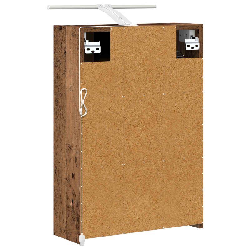 Този модерен огледален шкаф за баня съчетава стил и функционалност с простия си правоъгълен дизайн, който е перфектен за съвременните бани. Комбинира простота с полезност, идеално за всяка баня и предлага практични решения за съхранение. С двустранното огледало и регулируемите си функции, той лесно се интегрира в домашната обстановка. Конструкция от инженерна дървесина : Изработен от здрав инженерна дървесина, този шкаф е стабилен и издръжлив - перфектен за съвременните бани. Дървесината устои на промени и запазва своя вид с течение на времето. Двупосочно огледало : Този шкаф има иновативно двустранно огледало, което комбинира отражение и прозрачност. Полезно за тези, които искат малко уединение, особено в споделени пространства. Лесно откриване с врати на панти : Вратите отварят лесно, осигурявайки бърз достъп до всичко вътре. Няма усилия, за да достигнете нужните неща, което прави ежедневието по-лесно. Регулируеми рафтове : С регулируеми рафтове, вие можете сами да подредите вътрешността според нуждите си. Перфектно за разполагане на всякакви тоалетни принадлежности. Удобство при стенен монтаж : Стенният дизайн спестява място и добавя изчистен вид. Особено полезно за по-малки бани, където е важно да се оптимизира пространството. Моля, обърнете внимание, че трябва да използвате само сертифициран вход DC 5V. По-високото напрежение може да доведе до прегряване и да повреди устройството, както и до потенциален риск от прегряване и пожар. Не свързвайте този продукт към захранване, различно от описаното в ръководството, на табелката с името или изрично препоръчано от vidaXL. Този уред не трябва да се използва от деца под 15 години, както и от лица с намалени физически, сетивни или умствени способности или с липса на опит и познания относно използването на електронни уреди. Електричеството е опасно. Повредите и неправилният монтаж, употреба или промяна (подмяна на отделни компоненти) могат да доведат до повреда на уреда , което да доведе до токов удар и опасност за потребителя. Не използвайте този продукт във взривоопасна атмосфера, като например при наличие на запалими течности, газове и прах, или при температура над 50 градуса по Целзий или повече. Не включвайте продукта, ако свързващият кабел или захранването са видимо повредени. Ако външният гъвкав кабел или захранващ кабел на това осветително тяло е повреден, той трябва да бъде заменен изключително от производителя или негов сервизен агент, или от подобно квалифицирано лице, за да се избегне опасност. Изключете захранването по време на монтажа и поддръжката. Уверете се, че крушките са изстинали. Светлинният източник на това осветително тяло не може да се заменя; когато светлинният източник достигне края на експлоатационния си срок, цялото осветително тяло трябва да се замени. Само за употреба на закрито, не използвайте този продукт на открито.