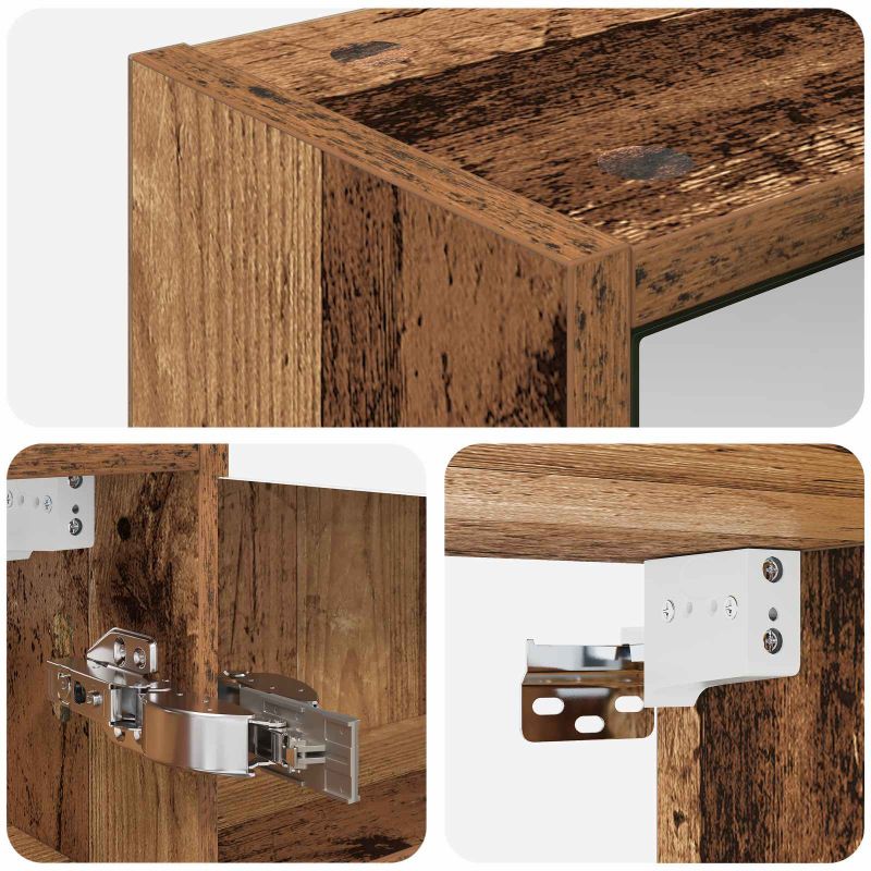 Шкаф с огледало за баня с рафт Старо дърво 43 x 16 x 62.5 см