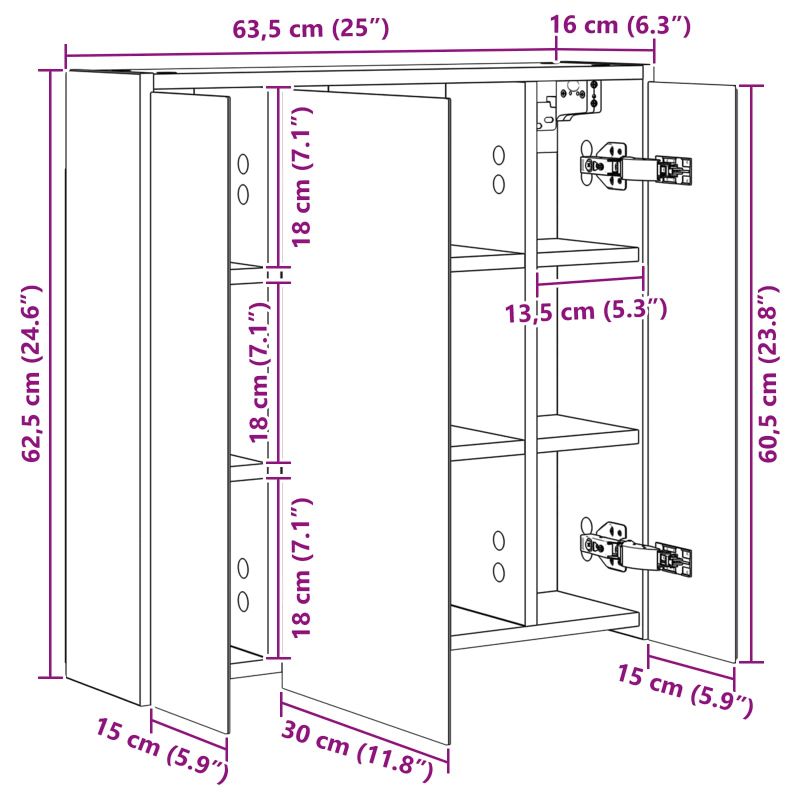 Шкаф с огледало за баня Бяло 63,5 x 16 x 62,5 см