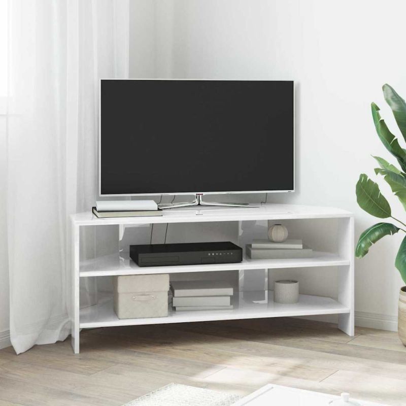 Ъгловшкафзателевизор Висок гланц бяло 102x40,5x45см