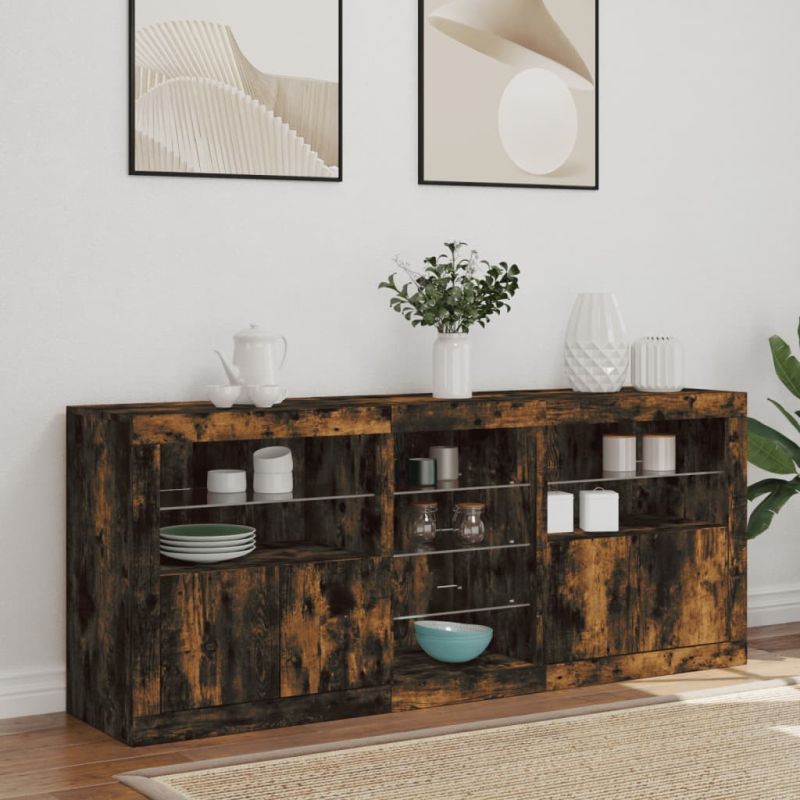Сайдборд с LED светлини, oпушен дъб, 162x37x67 см