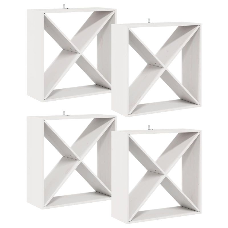 Винен рафт 4 pcs Бяло 62 x 25 x 62 cm Солидно борово дърво