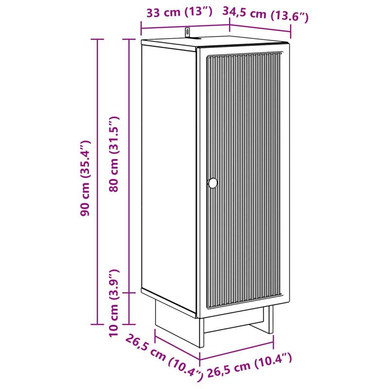 Този шкаф съчетава винтидж магия с модерна практичност. Направен е от инженерна дървесина и с неговото квадратното си оформление е идеален за всекидневни, показвайки индивидуалния ви стил. Дали за подредба или декорация, той е достатъчно универсален и привлекателен за всяко пространство. Премиум инженерна дървесина: Цялата структура е от инженерна дървесина, което добавя уникален стил, без да губи здравина. Той е проектиран да издържи ежедневно натоварване и да запази изисканата си визия. Обширни възможности за съхранение: С умна форма, шкафът предлага повече място за вашите вещи, което подпомага организирания начин на живот. Той е идеален за избягване на хаоса и поддържане на ред. Функционални размери: С размери 33 x 34.5 x 90 см, шкафът оптимизира пространството без да е натрапчив. Подходящ е за всякакви стаи, включително малки апартаменти. Необходима е удобна сглобка: Сглобяването е лесно и може да включва и приятел, за да е по-бързо. След като се сглоби, той има стил и издръжливост, правейки го важен елемент за всеки дом. Лесна поддръжка: Поддържането му в перфектно състояние е простичко — само с влажна кърпа. Това ви оставя повече време да се наслаждавате на практичната му красота.