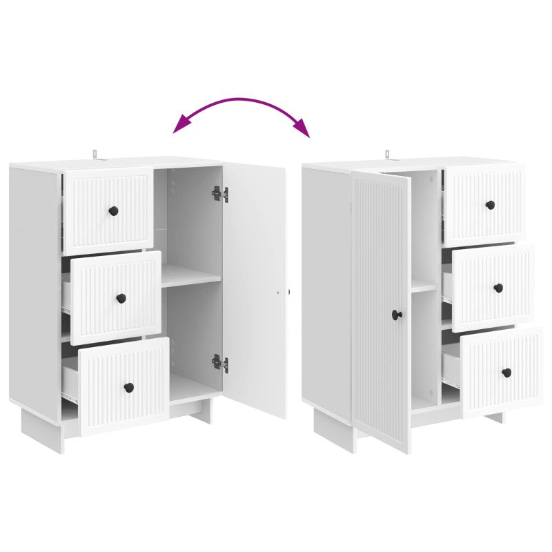 Този модерен сървър е стилно решение за съхранение, подходящ за всекидневната или трапезарията, с винтидж естетика. Със своето правоъгълно оформление, той лесно се вписва в пространството, добавяйки функционалност и стил. Подходящ е за съхранение на трапезарни принадлежности или показване на декоративни вещи. Включи го в дома си за шикозен акцент, който предлага и практичност. Инженерна дървесина: Сървърът е изработен от инженерна дървесина, което осигурява здрава конструкция. Повърхността е чиста и модерна, а материалът е избран за здравината и дълготрайността си. Ще ти служи години наред. Метални дръжки: Чекмеджетата и вратите на сървъра идват с хубави метални дръжки. Лесни за захващане, те добавят стил и удобство, правейки достъпа до вещите в сървъра безпроблемен. Техният вечен вид допълва винтидж стила. Врати с 90° панти: Вратите с 90° панти улесняват достъпа до нещата вътре. Този дизайн не само че изглежда ретро, но е и практичен. Лесно можеш да взимаш трапезарни вещи или да организираш декора в всекидневната. Конфигурация на рафтове: Вътре има рафтове, които помагат за съхранение на домашни предмети. Можеш да подреждаш чинии, купи или декоративни аксесоари. Те предлагат достатъчно решение за всяка ситуация. Поддръжка и монтаж: Лесно поддържаш сервъра, просто го избърсваш с влажна кърпа. Включва устройства за закрепване, за допълнителна безопасност. За монтажа са нужни двама души и стандартни инструменти, за да бъде сглобен сигурно и надеждно.