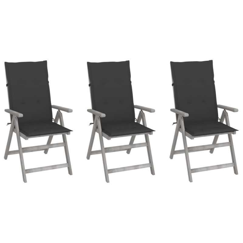 Градински накланящи се столове 3 бр с възглавници акация масив