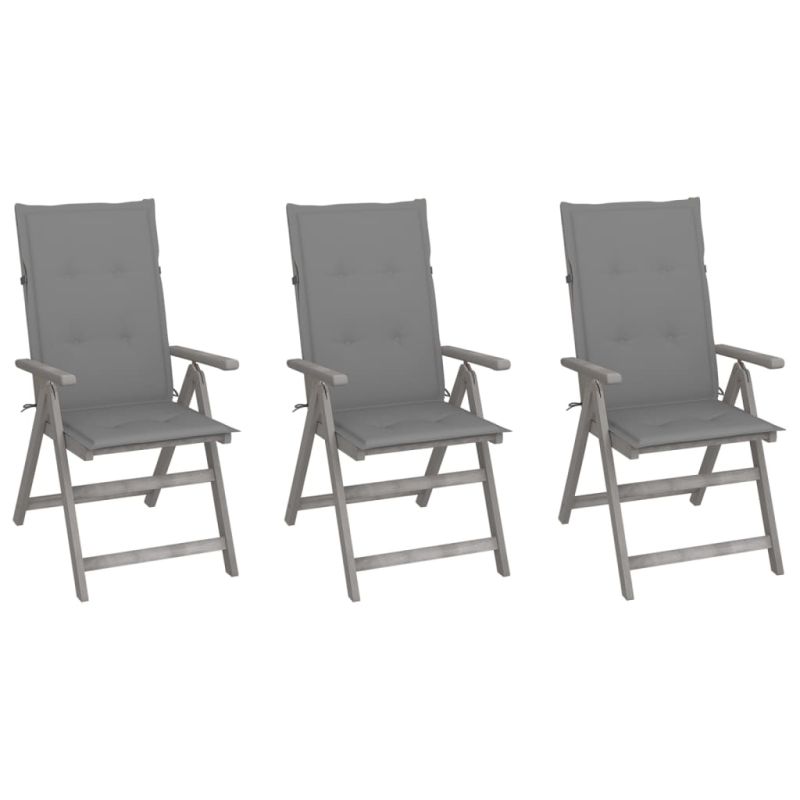 Градински накланящи се столове 3 бр с възглавници акация масив
