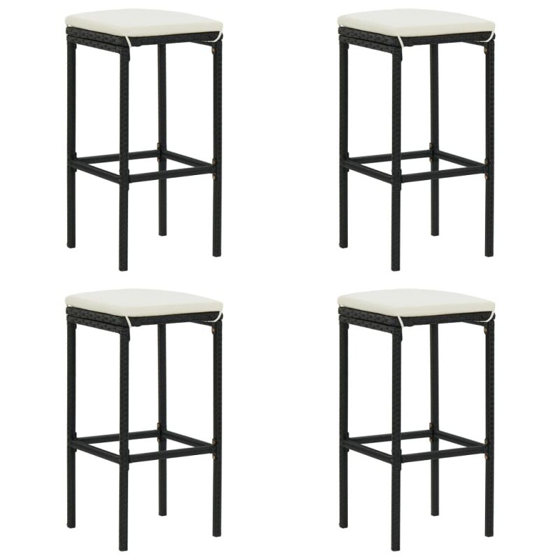 Градински бар комплект с възглавници, 5 части, черен полиратан