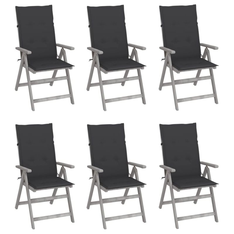 Градински накланящи се столове 6 бр с възглавници акация масив