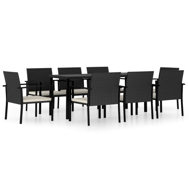 Градински трапезен комплект, 9 части, полиратан, черен