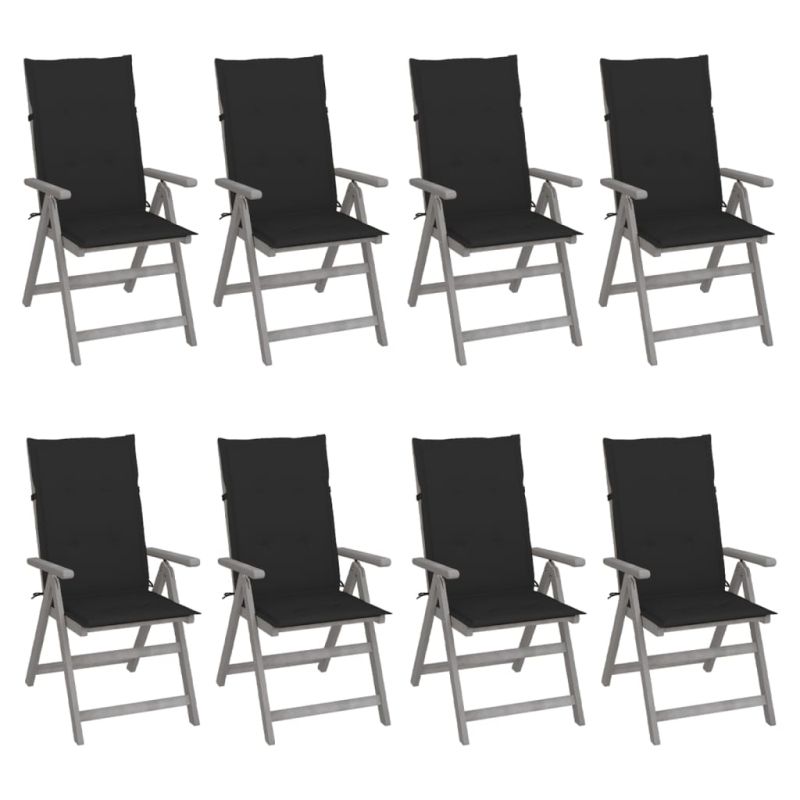 Градински накланящи столове с възглавници 8 бр сиви акация