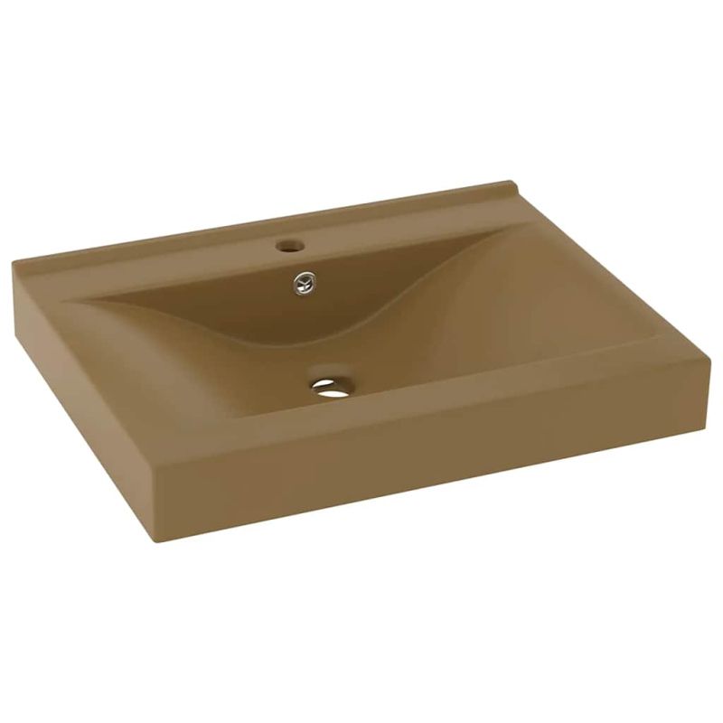 Луксозна мивка с отвор за кран кремав мат 60x46 см керамика