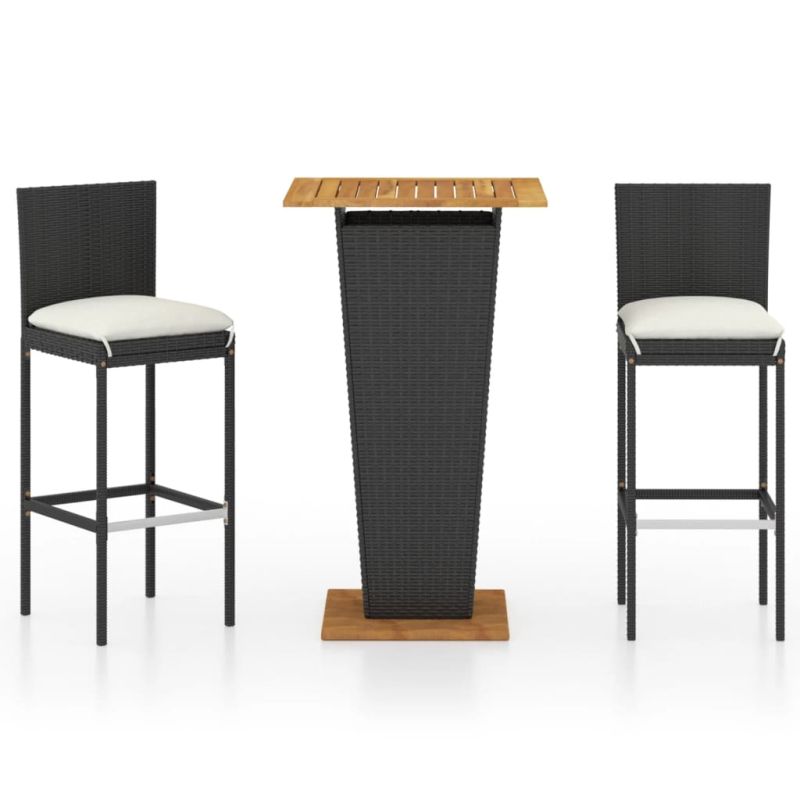 Начало Дом и градина Мебели Външни мебели Комплекти градински мебели Градински бар комплект с възглавници, 3 части, полиратан, черен