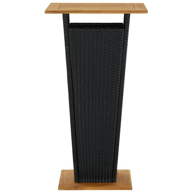 Този стилен градински бар комплект ви осигурява спокойно и комфортно прекарване със семейството и приятелите ви. Отличаваща се с прахово боядисана стоманена рамка, покрита с PE ратан, тази бар маса гарантира години употреба на открито. Освен това плотът и основата от масивно акациево дърво доставят допълнителна здравина и стабилност. Табуретките имат здрава конструкция от стоманена рамка, изработени са от устойчив на атмосферни влияния PE ратан, осигуряващ стабилност и са лесни за местене. Възглавницата и подложката за крака също придават допълнителен комфорт при седене на стола. Забележка: За да удължите живота на вашите градински мебели, препоръчваме ви да ги почиствате редовно и да не ги оставяте ненужно на открито без защита.Почистване: Използвайте мек сапунен разтворСъхранение: Ако е възможно, съхранявайте на хладно и сухо място на закрито. Ако продуктът се съхранява на открито, защитете го с водоустойчиво покривало. Избършете и изсушете излишната вода или сняг от плоските повърхности след дъжд или снеговалеж. Позволете достатъчно циркулация на въздуха, за да избегнете повреди, свързани с влагата. Максимално 110 кг на седалка. Съобразете се с риска от открит огън и други източници на силна топлина в близост до продукта.
