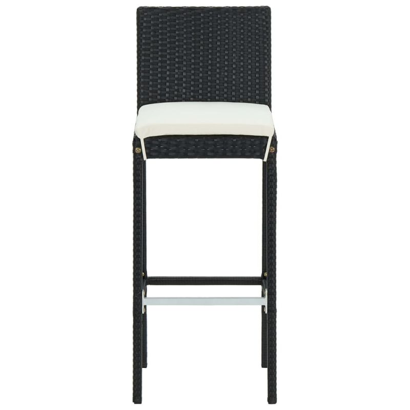 Градински бар комплект с възглавници, 3 части, полиратан, черен
