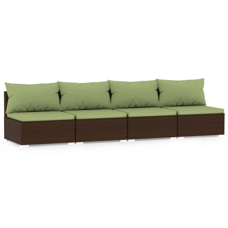 4-местен диван с възглавници, кафяв, полиратан