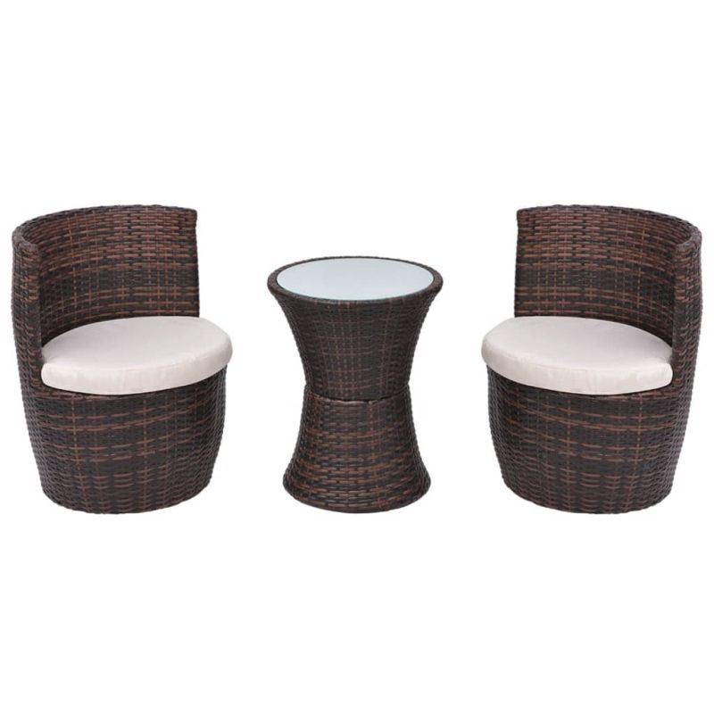 Бистро комплект, 3 части, с възглавници, кафяв полиратан
