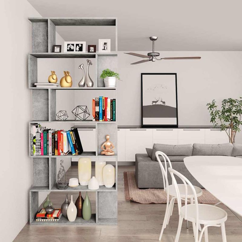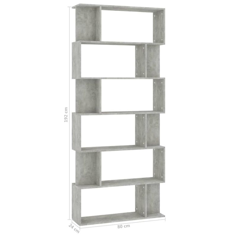 Разделител за стая, бетонно сив, 80x24x192 см, инженерно дърво