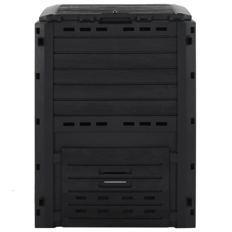 Този удобен компостер помага за ускоряване на разграждането на органичните вещества, рециклирането на органични отпадъци и е идеален за грижа за вашата градина. Издръжлив материал: Съдът за компостиране е изработен от издръжлив полипропилен с дървен вид. Той е устойчив на ултравиолетови лъчи и атмосферни влияния, което го прави подходящ за употреба на открито.Голям обем: Отличаващ се с компактен дизайн, градинският компостер заема малко място, но може да се похвали с голям обем.Интериор с висока степен на нагряване: Черният цвят прави вътрешната температура на контейнера за рециклиране по-висока. Високата температура спомага за по-бързото бактериално разграждане и за получаването на по-добър хумус. Забележка:Забележка: За да удължите живота на вашите градински мебели, ви препоръчваме да ги защитите с водоустойчиво покривало.Всеки продукт се доставя с ръководство за сглобяване в кашона за лесно сглобяване.