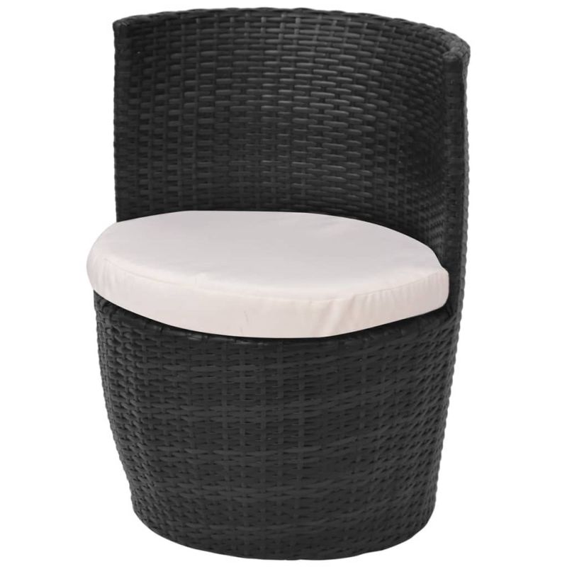 Бистро комплект, 3 части, с възглавници, черен полиратан