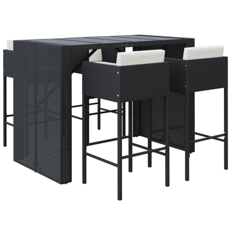 Градински бар комплект с възглавници 5 части черен полиратан
