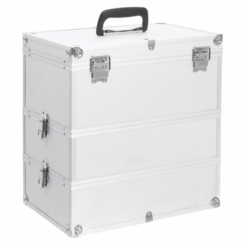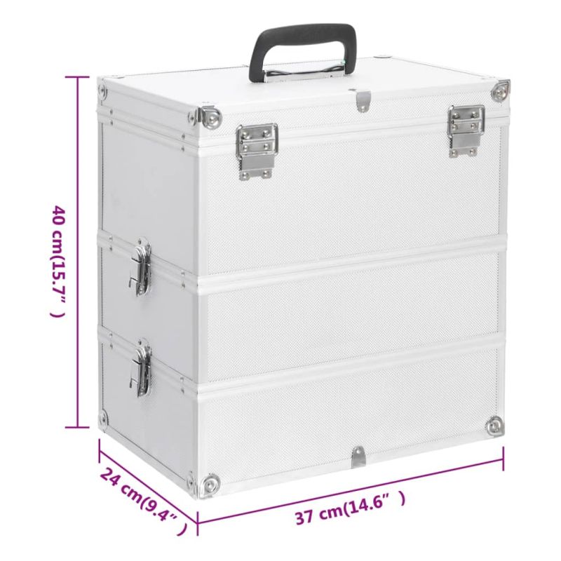 Куфар за гримове, 37x24x40 см, сребрист, алуминий