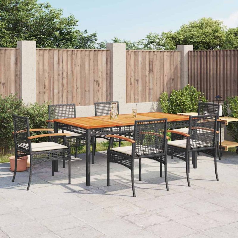 Градински трапезен комплект 7 части възглавници черен полиратан