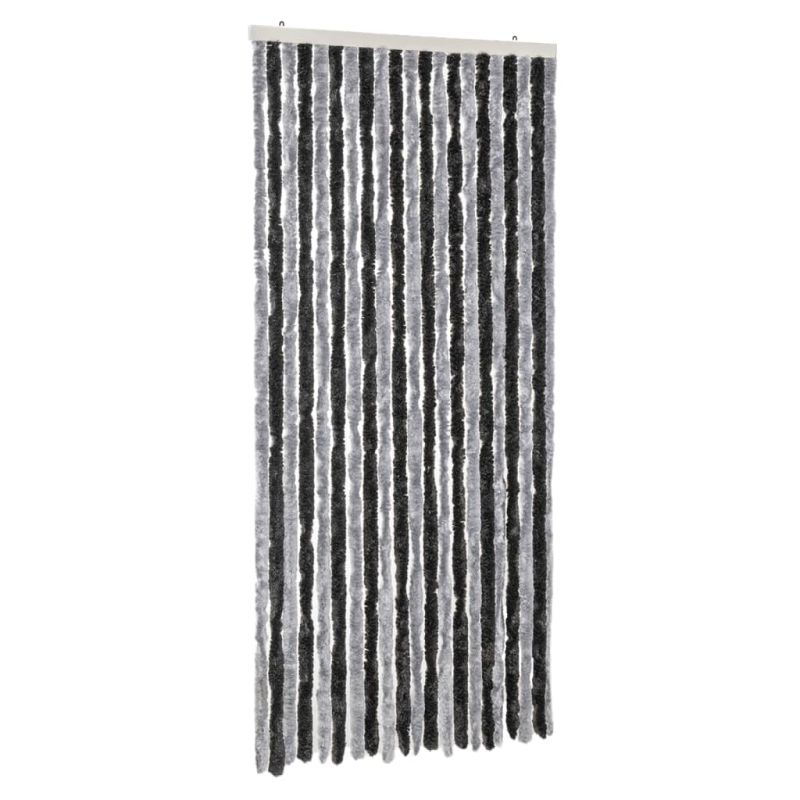 Ресни за врата против мухи, сиво и черно, 90x200 см, шенил