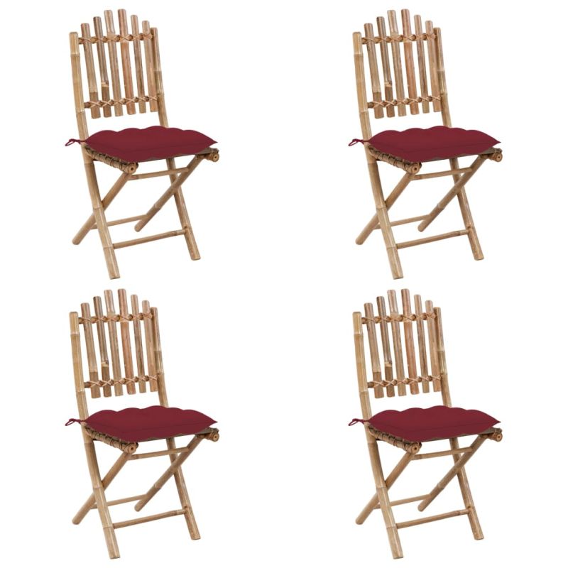 Градински трапезен комплект сгъваем възглавници 5 части бамбук