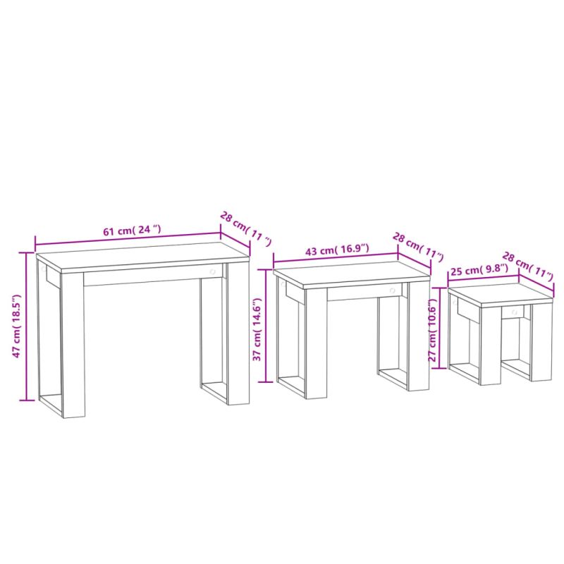 Начало Мебели Маси Акцентни маси Конзолни и странични маси Стифиращи маси, 3 бр, опушен дъб, инженерно дърво