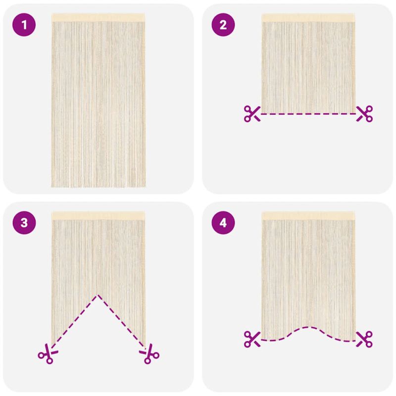Нашите практични пердета ресни представляват чудесен начин да украсите своя интериор. Те могат да се използват като ресни за врати, пердета за прозорци, разделител на помещения или фон за витрина.Завесите са изработени от 100% полиестерна тъкан и могат да се перат при ниски температури. Ако е необходимо, завесите лесно се изрязват до необходимия размер. В горната част пердетата е пришита лента, което ги прави лесни за закрепване към корниз. Доставката включва 2 броя пердета, а корнизът за завеса не е включен.