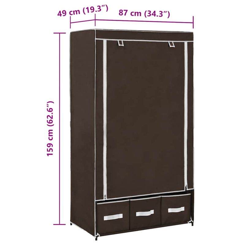 Гардероб, кафяв, 87x49x159 см, текстил