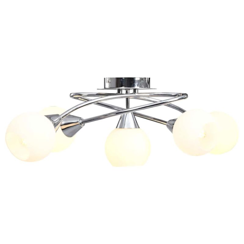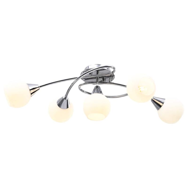 Полилей с керамични кръгли абажури, за 5 крушки Е14, бели