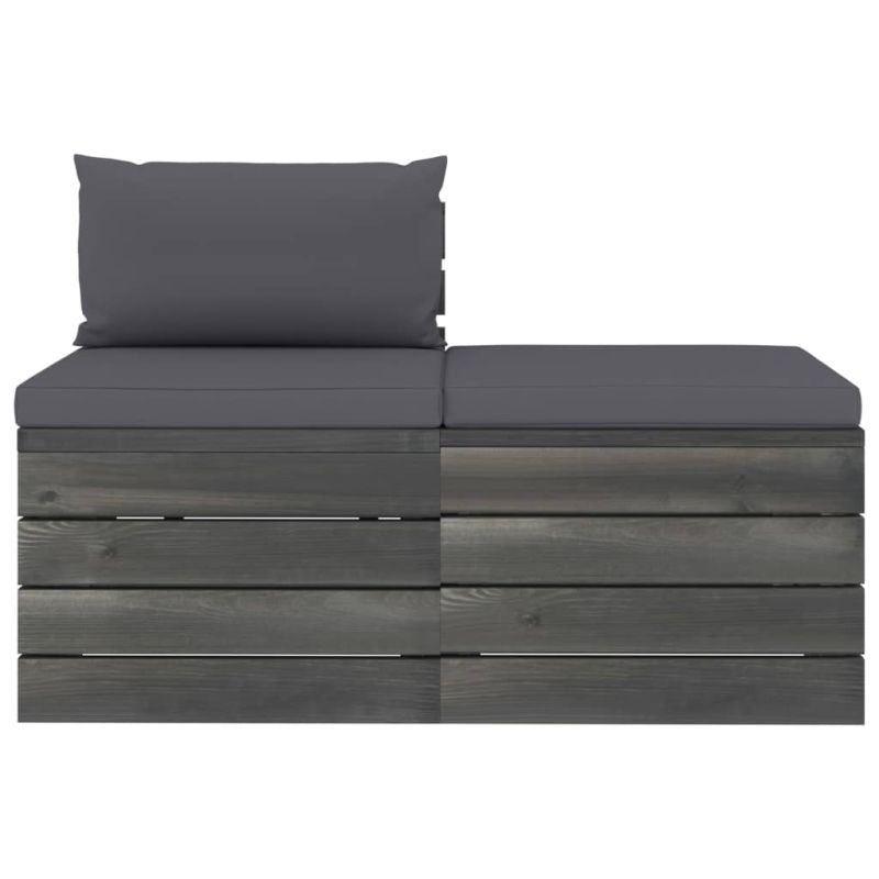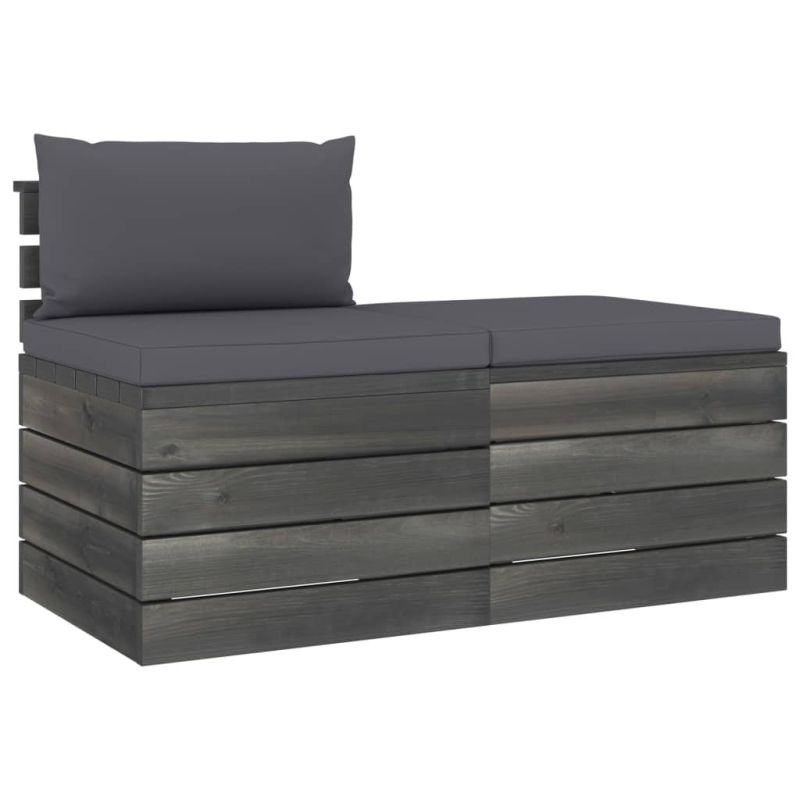Градински мебели от палети 2 части с възглавници бор масив