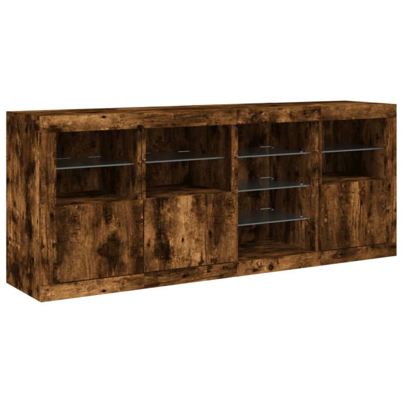Сайдборд с LED светлини, oпушен дъб, 164x37x67 см