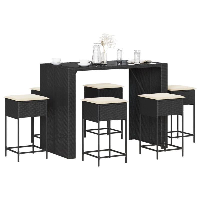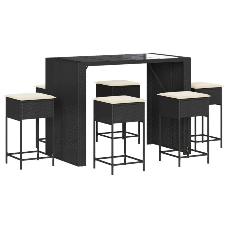 Този модерен градински бар комплект, съчетаващ както стил, така и функционалност, със сигурност е предназначен да бъде центърът на вашата градина, вътрешен двор и всяко друго жилищно пространство. Издръжлив материал: PE ратан, известен също като полиратан, е здрав синтетичен материал с малко необходима поддръжка, който прилича на естествен ратан. Той е лек, лесен за почистване и често се използва за външни мебели поради своята издръжливост и устойчивост на атмосферни влияния.Удобна седалка: Тази мебел за открито, снабдена с плътно подплатени възглавници, предлага удобство при сядане.Калъф, който може да се сваля и може да се пере: Тези възглавници за седалки имат подвижни калъфи за лесно пране и поддръжка.Стъклен плот: Плотът на външната маса е изработен от здраво и издръжливо закалено стъкло, което улеснява почистването с влажна кърпа и добавя нотка елегантност към вашето външно пространство.Здрава и стабилна рамка: Стоманената рамка с прахово покритие гарантира, че градинската мебел е здрава и стабилна за ежедневна употреба на открито. Добре е да се знае:За да сте сигурни, че вашите външни мебели ще останат красиви, ви препоръчваме да ги защитите с водоустойчиво покривало. Максимално 110 кг на седалка.