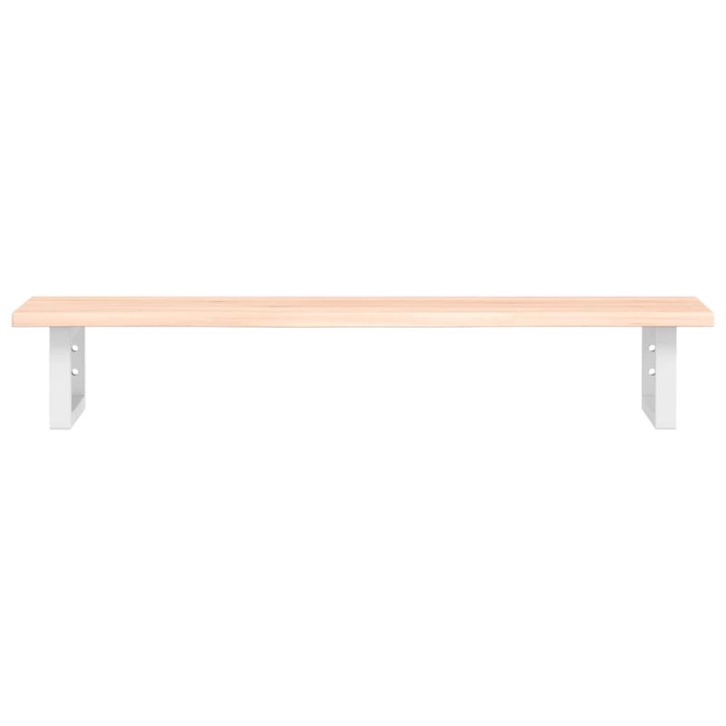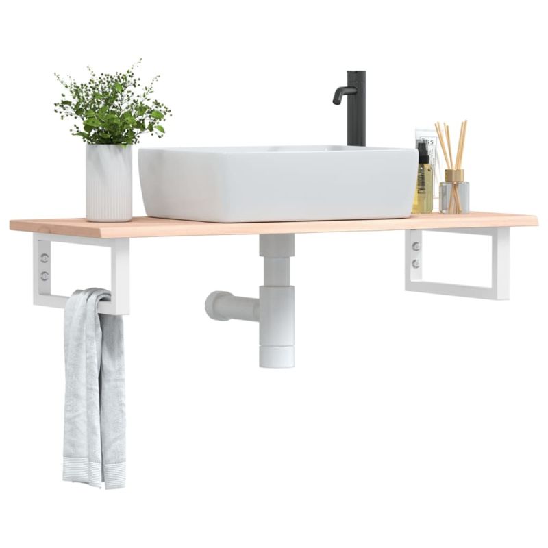 Стенният рафт за мивка се прикрепя сигурно към стената, осигурявайки елегантно и спестяващо място решение за вашата баня. Здрав и дълготраен: Този рафт за мивка е комбиниран със стоманена конструкция и плот от масивна дъбова дървесина, което го прави здрав, стабилен и дълготраен.Спестяване на място: Плаващият рафт за мивка има достатъчно място за съхранение на кремове и дребни предмети. Благодарение на правоъгълната форма можете да закачите кърпи или други неща на опората, за да спестите място.Лесен за използване: Плотът се доставя без дупки, за да позволи на мивката да се монтира отляво, отдясно или в центъра, в зависимост от изискванията на вашето помещение. Благодарение на предварително пробитите отвори в държача, той може лесно да се сглоби с плота и да се монтира на стената.Широки приложения: Благодарение на модерния си дизайн, осигурява допълнително пространство за различни видове бани. Добре е да се знае:Винтовете не са включени, можете да закупите винтовете отделно въз основа на информацията, предоставена по-долу.Прикрепване към стена: 2 бр дюбели M8 на скобаДървен плот: 2 бр M5x18 винта (T=2) или 2 бр M5x20 винта (T=2,5/4 см) на скобаКато естествен продукт, дървото може да има възли и несъвършенства, които ние запълваме с черни пълнежи, за да осигурим гладък външен вид.