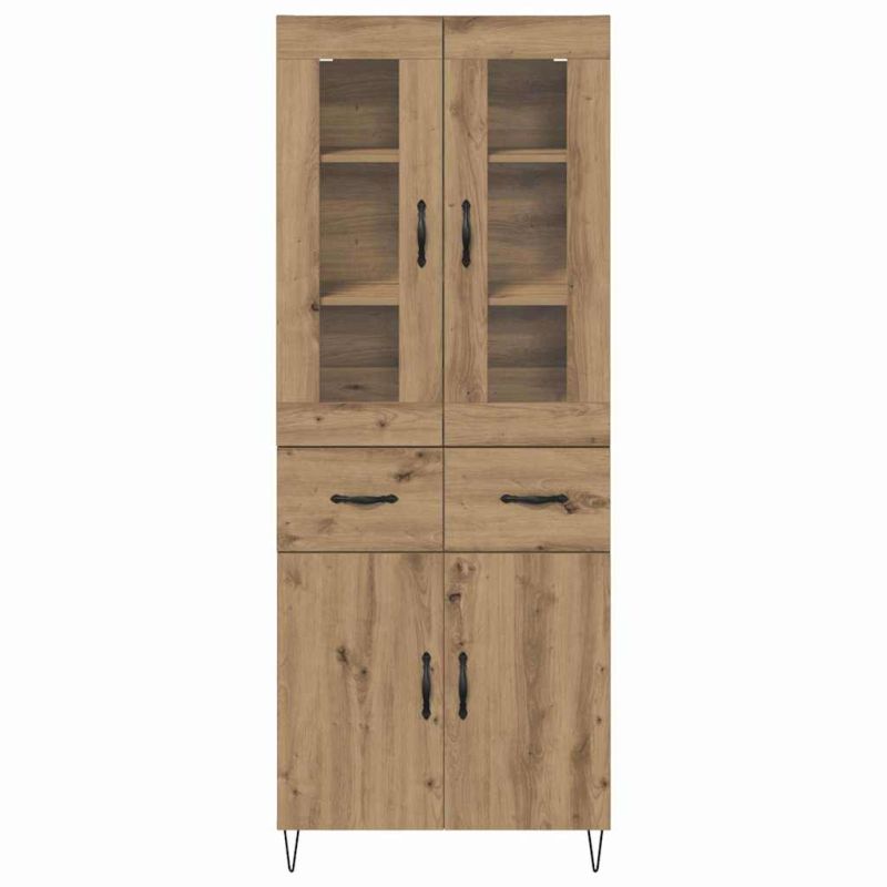 Този висок шкаф с модерен дизайн предлага и достатъчно, и стилно решение за вашата всекидневна или трапезария. С елегантните си линии и минималистичен стил, той допълва много интериорни стилове, добавяйки нотка елегантност и практичност. Високият шкаф е с модерен вид и перфектен баланс между стил и функция, което го прави забележителен акцент в помещението. Проектиран е за вътрешна употреба, шкафът отговаря на всичките ви нужди за съхранение с просторни отделения зад елегантни прозрачни врати и здрави метални дръжки. Материали: Шкафът е направен от висококачествена инженерна дървесина, което осигурява стабилност и дълготрайност. Този издръжлив материал е идеален за домакинства, тъй като запазва формата и външния вид с времето. Лесен е за поддръжка и устойчив на влага, инженерната дървесина допринася за елегантния и практичен характер на съвременните интериорни решения. Включени компоненти: Шкафът включва прозрачни стъклени врати, които добавят функционалност и стил. Стъклото позволява видимост на вашите ценни предмети, и същевременно осигурява защита от прах. В комбинация с издръжливи крака от желязо, шкафът предлага стабилна и стилна основа. Тази внимателно проектирана комбинация от компоненти прави продукта не само красив, но и практичен. Характеристики / Функция / Дизайн: С дълготрайна конструкция, вратите на шкафа и металните дръжки с форма на лък предлагат лесен достъп, позволявайки ви да организирате и съхранявате без усилия. Прозрачният вид на вратите добавя усещане за откритост, подобрявайки атмосферата в помещението. Наслаждавайте се на простотата и функционалността в дизайна, подходяща за съвременни жилища. Препоръчителни употреби: Тази многофункционална единица е идеална за разнообразни нужди, като съхранение на съдове в трапезарията или книги и декорации в всекидневната. Чистите линии и внимателната изработка идеално се вписват в минималистичния стил, осигурявайки не само практично съхранение, но и красиво място за показване на вашите колекции. Инструкции за поддръжка: Сглобяването е важно и изисква отвертка и усилие на двама. За да предотвратите риск от преобръщане, прикрепете този висок шкаф към стабилна стена. За почистване използвайте суха кърпа, за да поддържате безупречното му състояние и му осигурите дълготрайна приставка за вашия дом.