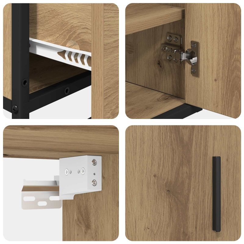 Този комплект за баня съчетава практиките с красивото за съвременната дома. С минималистичния си стил, той е идеален за всяка баня. Изработен от инженерна дървесина, той придава елегантен вид. Чудесен за малки и големи пространства, той осигурява решения за опазване на мястото, без да жертва нищо от стила. Включва функционален огледален шкаф, който е готин и практичен, а шкафът за мивка предлага достатъчно място за всичко необходимо. Създава спокойна атмосфера в банята за всеки ден. Състав от инженерна дървесина Комплектът е направен от устойчива инженерна дървесина, която осигурява дълготрайност и модерен вид. Издържа на износване и остава елегантен при честото използване. Дървото е идеален материал за ваша баня. Включва огледален и мивков шкаф Идва с огледален шкаф и шкаф за мивка, които максимизират съхранението. Огледалният шкаф съхранява козметиката, а шкафът за мивка е за по-големи предмети. Всичко е проектирано за удобство и стил. Съвременни функционални характеристики С минималистичен дизайн, комплектът включва плоско огледало и здрави крака. Той предлага стабилност и добавя елегантен вид. Този функционален подход отговаря на нуждите на съвременните потребители. Безпроблемна стенна инсталация Проектиран за стенен монтаж, което спестява нужното пространство. Имате възможност за регулиране на височината, в зависимост от предпочитанията ви. Проста грижа Лесно е да се грижите за комплекта, само с влажна кърпа. Тази поддръжка осигурява дълготрайност, а чистотата остава на първо място.