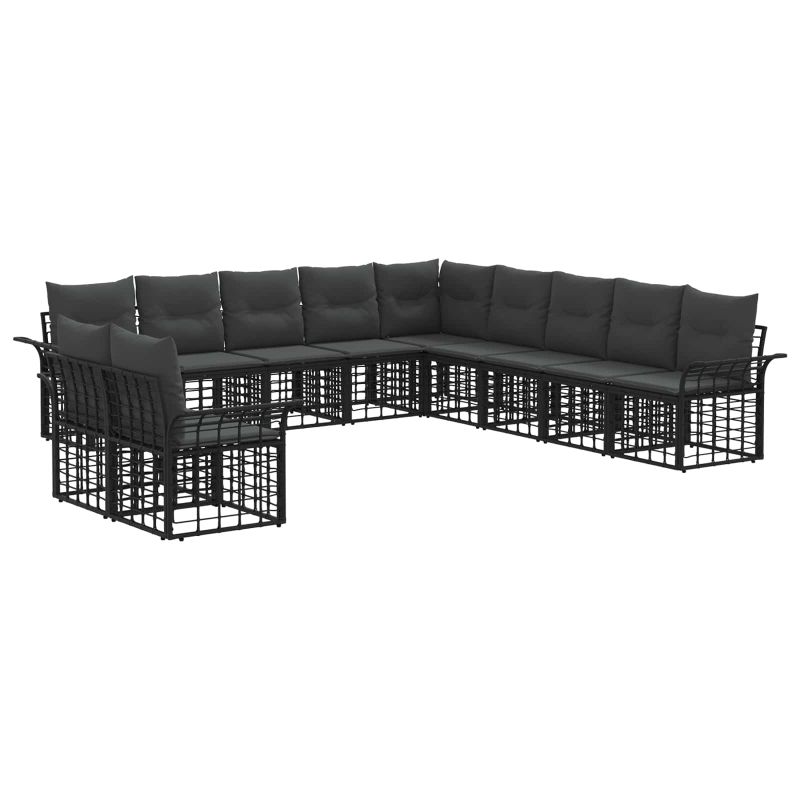 Комплект дивани за открито 11 pcs Черно и тъмно сиво Полиестер