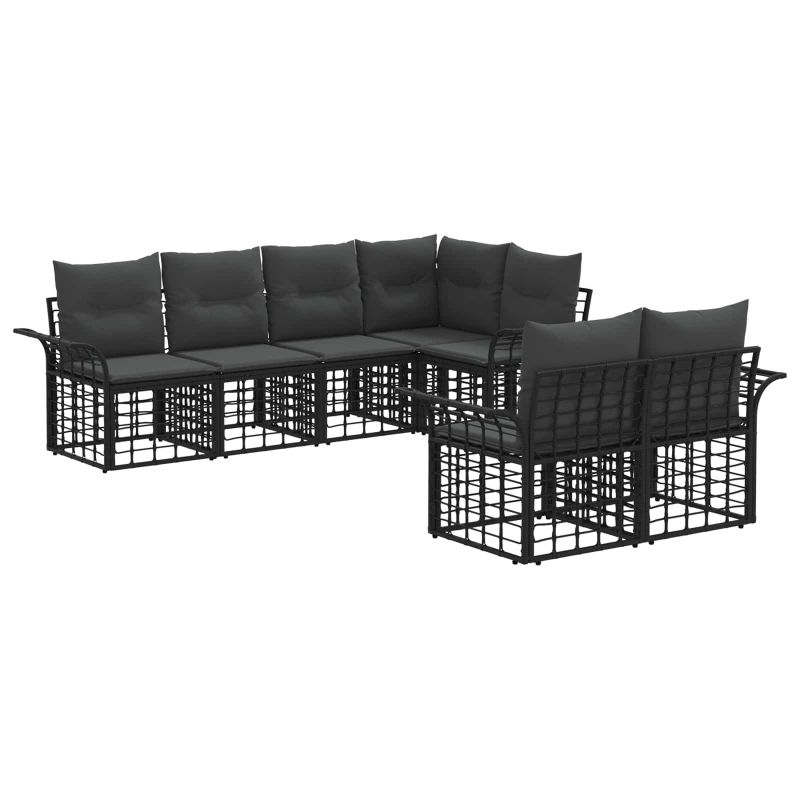 Комплект дивани за открито 7 pcs Черно и тъмно сиво Полиестер