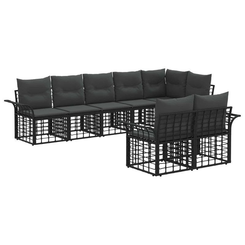 Комплект дивани за открито 8 pcs Черно и тъмно сиво Полиестер