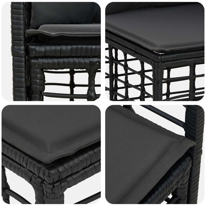 Този градински секционен диван комплект е удобно и практично решение за вашата градина или тераса, създаден специално за употреба на открито. Модулният дизайн позволява да нагласите разположението по ваше желание, като предлага стил и функционалност. Всяка част е направена с устойчив покритие от полиратан и стоманена конструкция, които осигуряват здравина и визуален чар с прахово покритие. Удобните възглавници от полиестер са насочени към лесна поддръжка, за да отговорят на вашито желание за уют и устойчивост. Устойчива рамка от полиратан: Използваме леки, но здрави полиратан и стомана, за да осигурим дълготрайност. Тези материали правят нашия диван устойчив на влага, перфектен за сезоните навън. Удобни възглавници: Възглавниците са пълни с комбинация от пяна и полипропиленови влакна, които предлагат отлично удобство. Закопчаването с клапа осигурява надеждно закрепване на възглавниците, а устойчивият екстериор е подходящ за открито. Модулно персонализиране: Модулните компоненти ви позволяват да нагласите комплекта така, че да подхожда на вашето пространство. Гъвкавостта му означава, че можете да идевате решения за самостоятелна употреба или да го включите в по-големи ансамбли. Функции, устойчива на времето: Продуктът е проектиран да устоява на UV лъчи и дъжд, което осигурява надежден комфорт на открито. Практически инструкции за грижа: Поддържането на комплекта е лесно с ясни указания. Препоръчваме да покриваш мебелите, когато не ги ползваш, да избягваш пряка слънчева светлина и да почиствате редовно с влажна кърпа.
