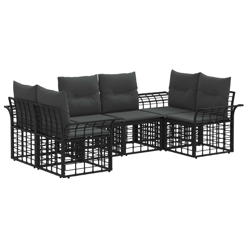 Комплект дивани за открито 6 pcs Черно и тъмно сиво Полиестер